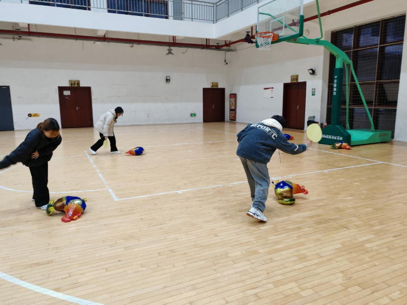 素质拓展环节设置了一系列集趣味、挑战与协作于一体的团队项目:“同心鼓”在一次次颠球中凝聚起团队的默契与耐心;“无敌风火轮”与“一圈到底”考验着队员们步伐的协调与节奏的统一;“赶鸡入笼”与“揪尾巴”则让欢声笑语在互动中流淌,轻松中见智慧;“四平八稳”与“东南西北跑”更是在动静之间激发策略思维与高效执行。各小队在比赛中携手并进、全力拼搏,现场气氛既紧张激烈,又洋溢着青春的活力与有序的团队风貌。