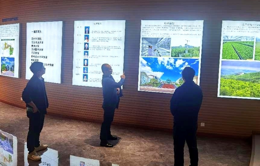 一行人首先参观了贵州蓝莓产业发展展示厅,了解了近年来蓝莓产业发展现状、相关政策及科研动态。调研小组通过实地考察、与当地农户交流等方式,了解到当地蓝莓病虫害频发,随后便为农户普及了蓝莓各种病虫害绿色防控技术,并讲授了蓝莓酒酿造工艺。