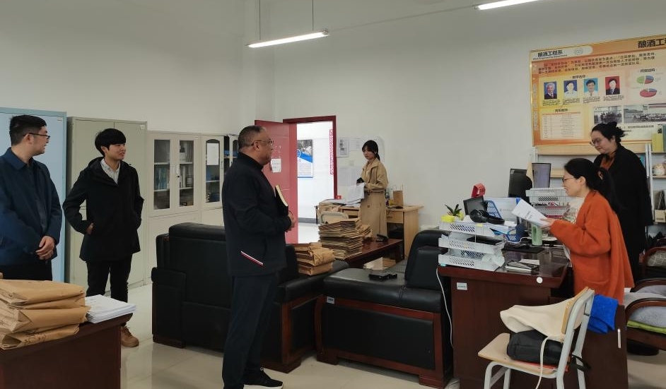 近日,学校党委副书记、常务副校长李增驰同志到酿酒工程系走访调研,学校党委委员、副校长张春林及我系党政班子成员陪同调研。