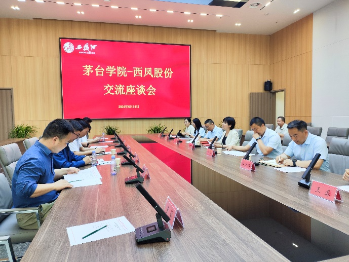 酿酒工程系骨干教师李喆、杨亮、时伟、李琼、黄婷,西凤酒股份有限公司基酒生产管理中心主任邢钢、技术研发中心主任金成勇、酒体设计中心主任陈君平、人力资源部副部长薛如、基酒生产管理中心副主任任金玫、王磊参加交流。