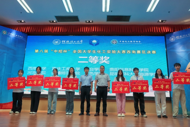 2025年7月17日至20日,第八届“中控杯”全国大学生化工实验大赛西南赛区决赛在广西桂林举行,由桂林理工大学承办。酿酒工程学院白酒酿造工程2023级陈雪、赵温豪、王占任三位同学在李静、王克良、许华杰三位老师的指导下,凭借扎实的专业功底和出色的实验能力,荣获二等奖。