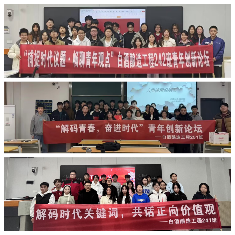 白酒酿造工程251班以“解码青春·奋进时代”为核心,融合自我认知与时代定位的思考。