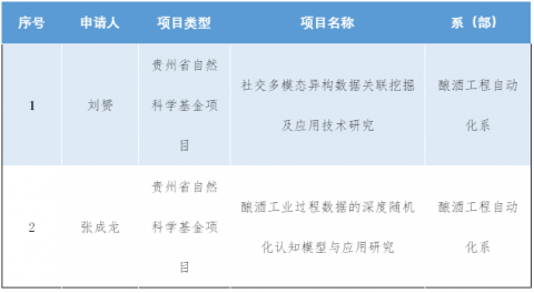 喜报:今年会官方网站酿酒工程自动化系2022年获2项贵州省自然科学基金项目立项
