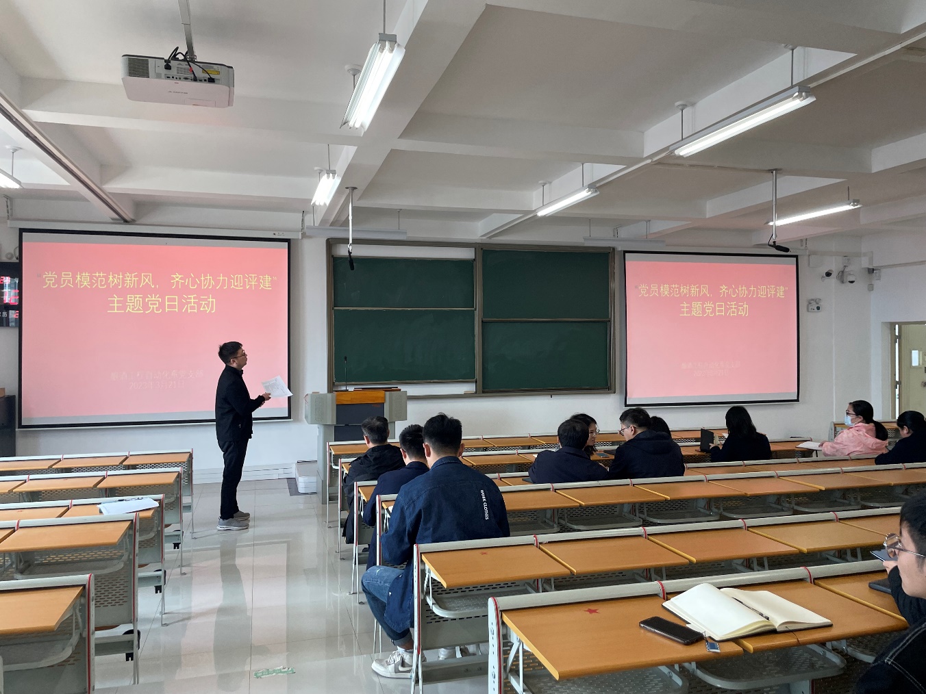 酿酒工程自动化系党支部于2023年3月21日举办了“党员模范树新风,齐心协力迎评建”主题党日活动。本次活动,以“迎评促建”为主线,助推和保障学校评建工作有序开展,支部党员先锋为合格评估工作建言献策。