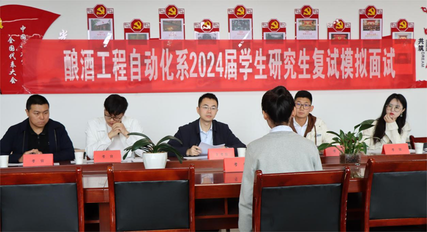 为帮助学子提前了解复试流程及相关要求,积累面试经验,针对性备考,2024年3月22日酿酒工程自动化系组织开展了2024届学生考研复试模拟面试。酿酒工程自动化系副主任王陈诚,专任教师王银龙、庞传远、黄秋红及公共基础部杨运老师出席本次活动并担任考官,2024届考研上线的10名学生参加。
