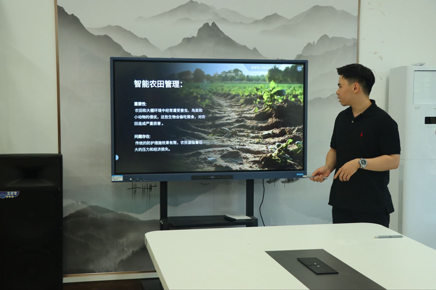 此次比赛由李东、李江鹏、邱旭三位相关专业老师担任评委,本系党支部副书记陈照静现场观摩。比赛现场气氛热烈,三位评委们认真聆听每一个团队的展示,从项目的创新性、技术难度、应用前景等多个维度进行严格评审,并为各位选手针对其作品提出优化改进建议。