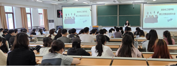 为扎实推进2025届毕业生就业工作,4月17日下午,自动化工程学院在留芳楼512教室召开第三次就业动员大会。学院党总支书记欧信忠、副书记肖启霞出席会议,会议由辅导员夏玲玲主持,2025届自动化、包装工程专业全体学生参加。