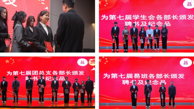 随后,会议对第七届优秀学生干部颁发了证书和纪念品,对新一届学生干部成员颁发了聘书,旨在通过榜样的力量激发广大学生干部干事创业的热情。