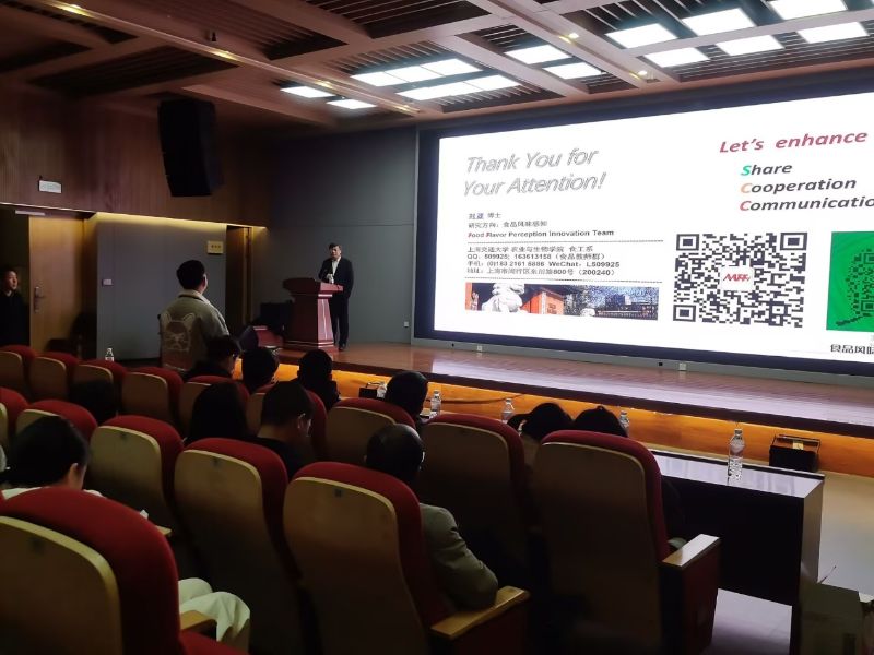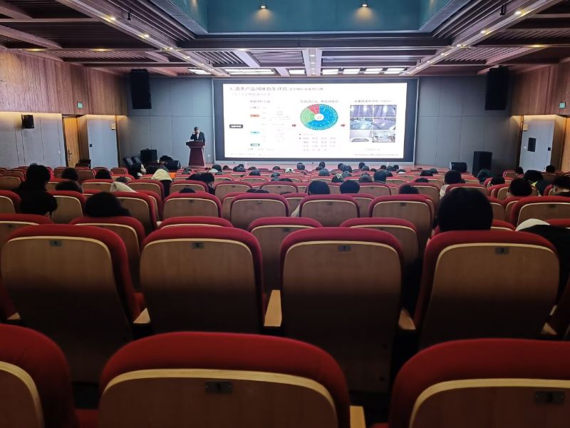 活动伊始,刘源教授凭借在食品科学领域多年积累的深厚造诣,围绕酒类产品风味品质评价展开了引人入胜的讲解。刘源教授及其团队的科研成果主要集中在运用感知客体风味组学,精准鉴定白酒特征成分;针对不同轮次及系列白酒,从口感、滋气味等多维度解析其风味组分;基于靶向与非靶向多组学,深入鉴定白酒特征标记物质,助力白酒品质提升与创新发展。