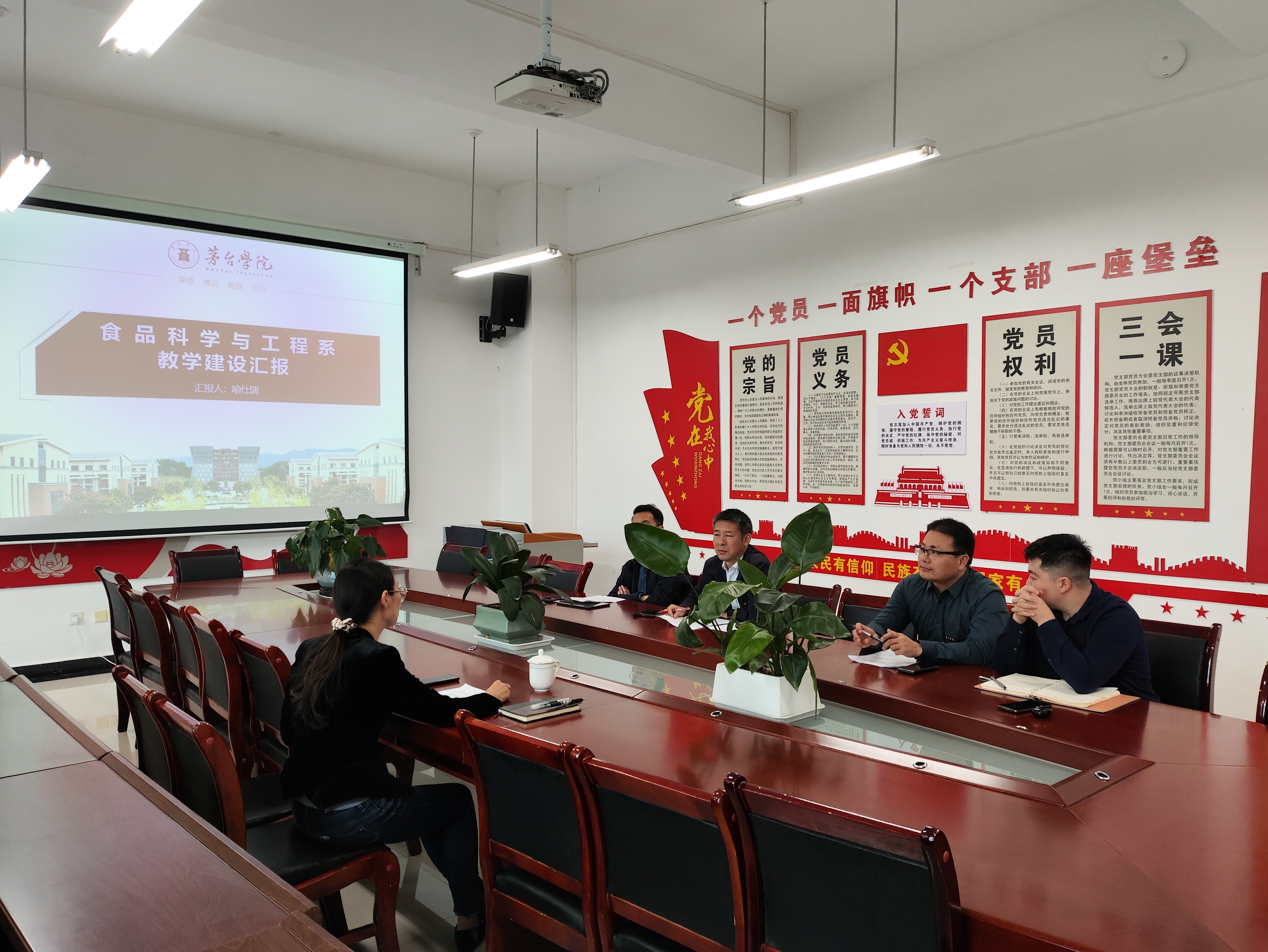 余莉听取了食工系党总支书记喻仕瑞关于实验室及实践教学基地建设、展示中心、走廊文化、系部汇报PPT、文化墙、办公室5S落实情况的工作汇报,并对目前系部已完成的工作给予充分肯定,就如何做好迎评工作、汇报内容等跟与会人员进行了交流。