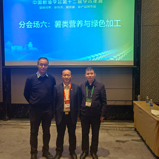 2025年10月25日至27日,中国粮油学会第十二届学术年会在江苏无锡举办。会议由中国粮油学会与江南大学主办,聚焦粮食领域科研进展、技术创新及产业高质量发展,设开幕式、院士论坛、10个分会场及成果展览等板块,会议吸引全国近1000位专家、学者及企业代表参加。食品工程学院食品科学系主任吴广辉教授应邀参加会议,并在“分会场六 薯类营养与绿色加工”作题为“不同处理方式对红薯淀粉理化和结构特性影响”的专题报告,并向有关专家交流了食品科学与工程专业建设、食品科学相关学术问题。