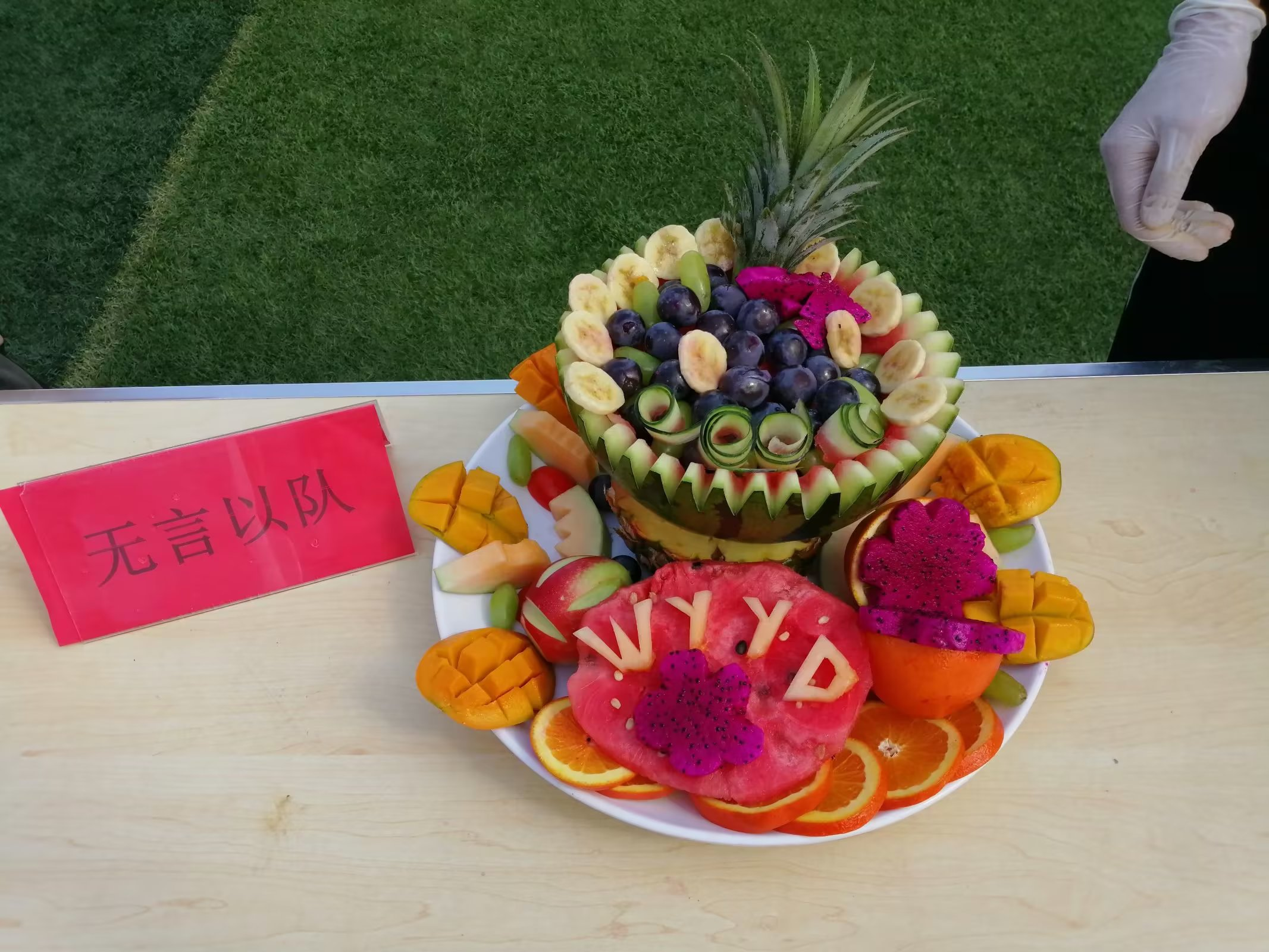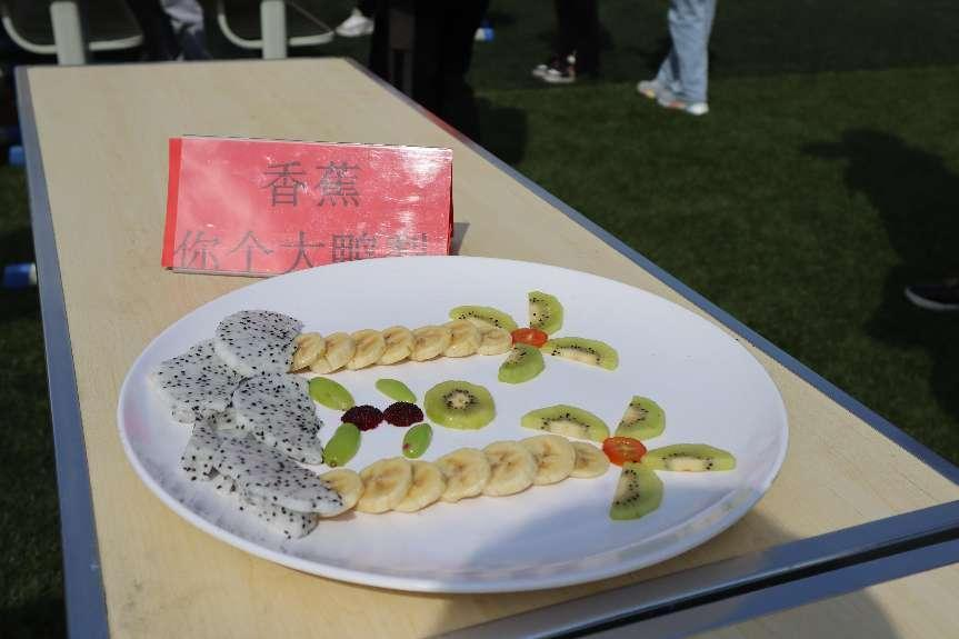 随着主持人宣布比赛开始,每个小组的同学们配合默契,忙得不亦乐乎,尽情发挥自己的创意,向现场观众和评委呈现了五彩缤纷的水果拼盘作品。评委从整体创意、色彩搭配、营养价值等几个方面依次进行评分。