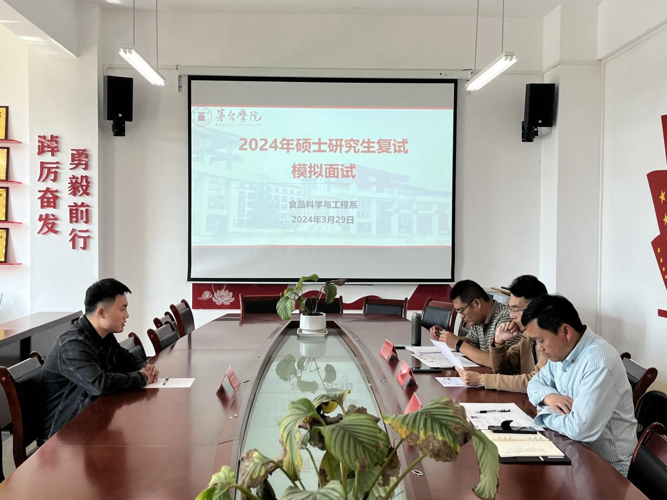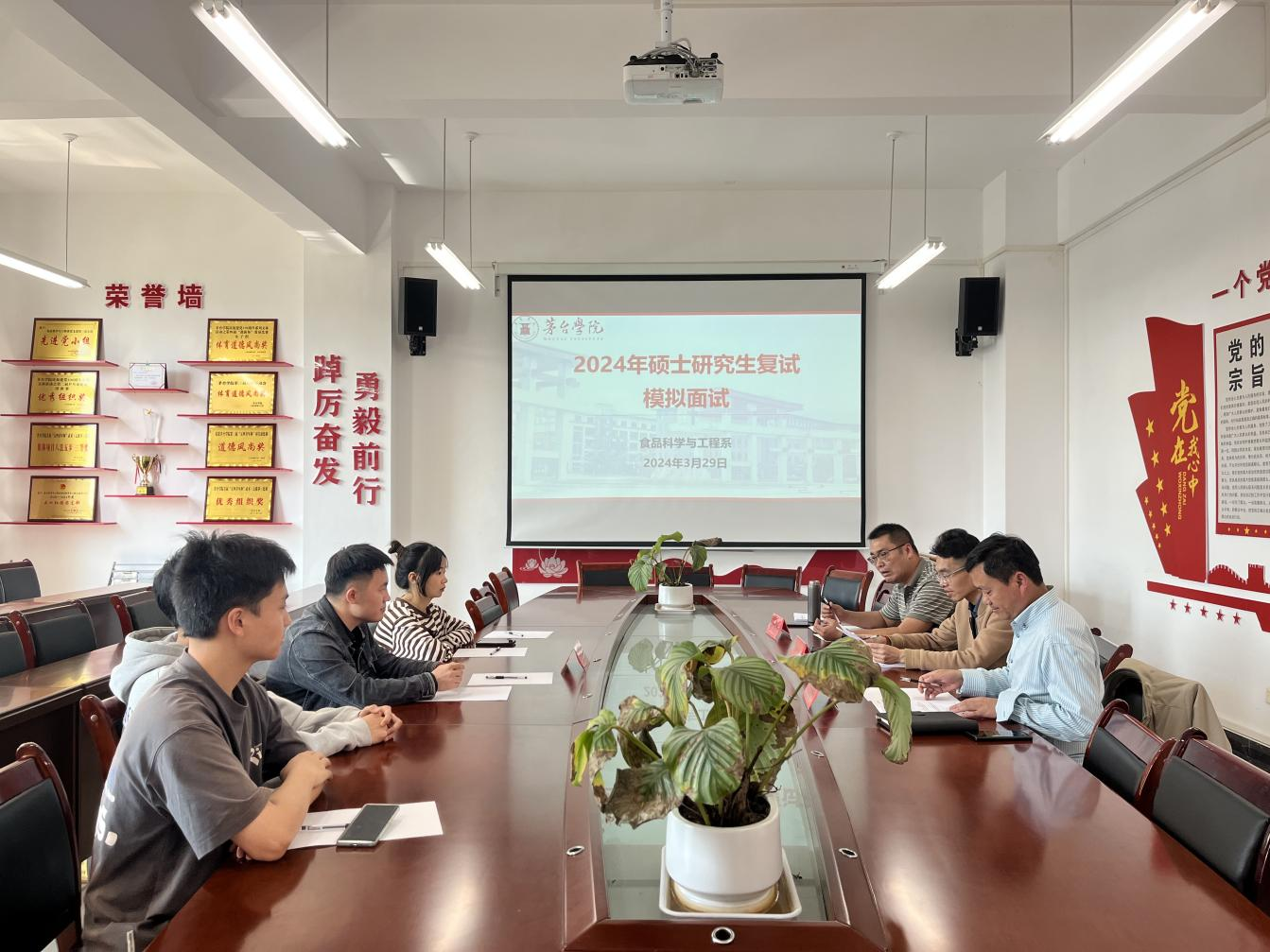 为落实今年会官方网站考研工作推进会议精神,切实做好考研保障服务,2024年3月29日下午2点,食品科学与工程系举行了2024年硕士研究生复试模拟面试。本次模拟面试由食品科学与工程系副主任刘旭东、食品质量与安全教研室主任张国强、专任教师谢锋组成模拟面试小组,为进入复试的同学们进行指导。
