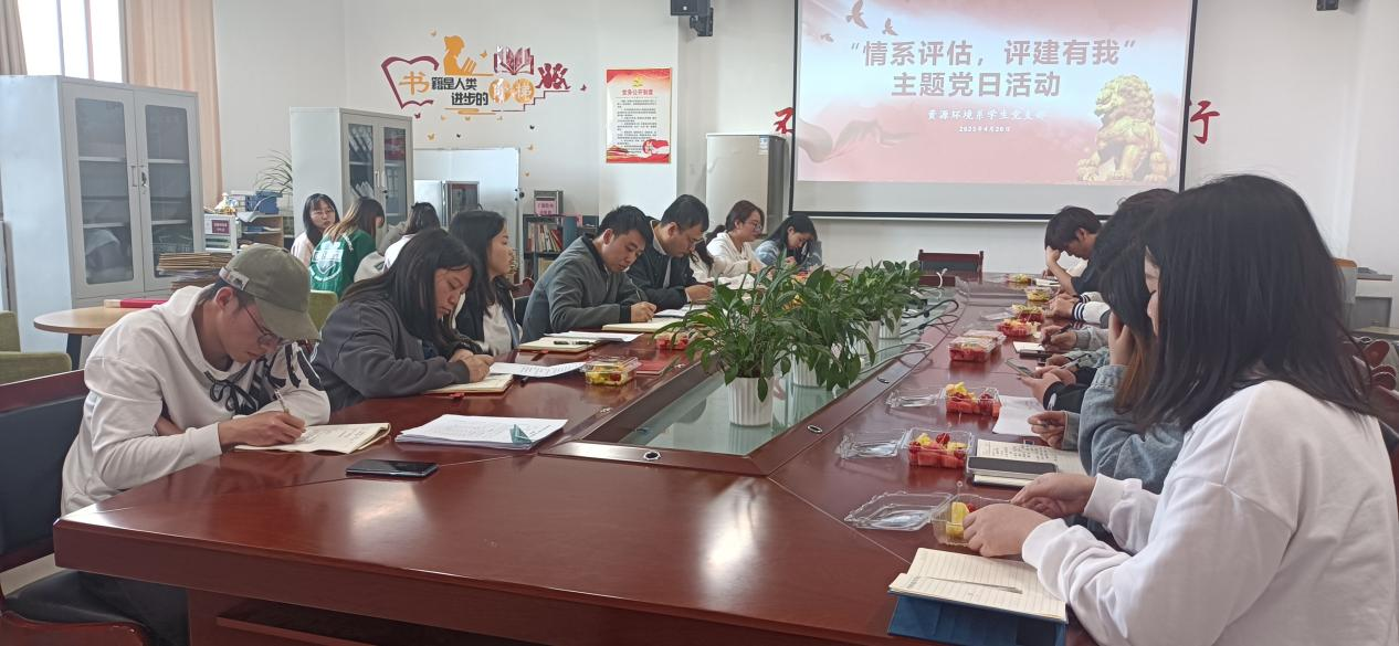 为教育引导广大师生党员发挥先锋模范作用,积极投身学校本科教学合格评估工作,在“以评促建”的实际行动中砥砺党性,增强大局观念。资源环境系学生党支部于4月26日开展“情系评估,评建有我”主题党日活动。系党总支副书记黄华老师、团总支书记栾康老师、辅导员骆娜老师、鲁镜镜老师及党员、学生代表参与了本次活动。