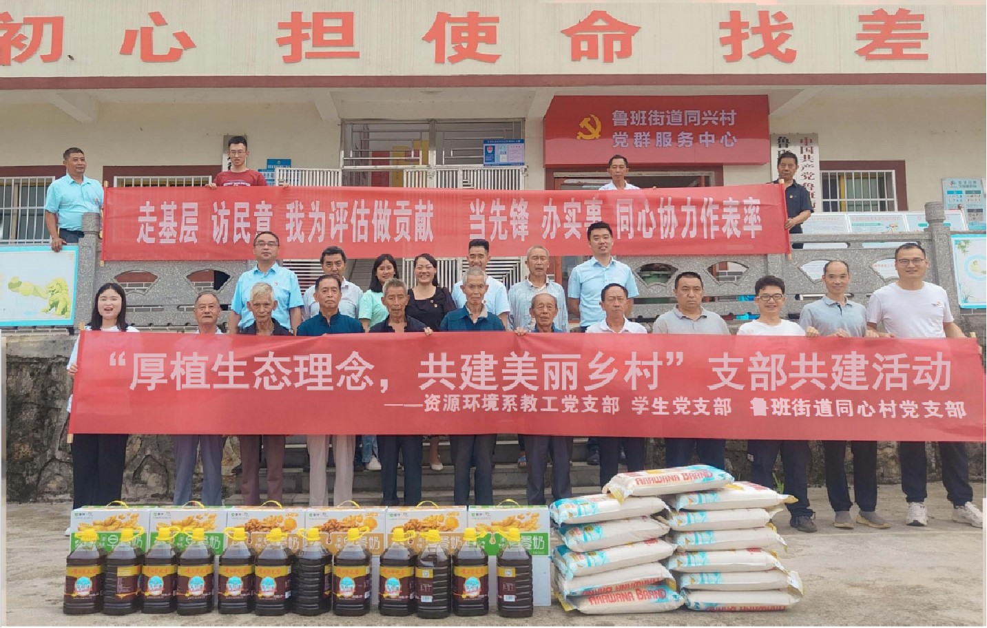 为持续深入学习贯彻习近平生态文明思想,切实将党的二十大精神学习成果转化为和美乡村建设的工作实效。2023年7月26日,资源环境系学生党支部和教职工党支部党员代表前往仁怀鲁班同兴村与该党支部党员联合开展了支部结对共建暨“走基层、访民意,我为评估做贡献;当先锋、办实事,同心协力作表率”主题活动。