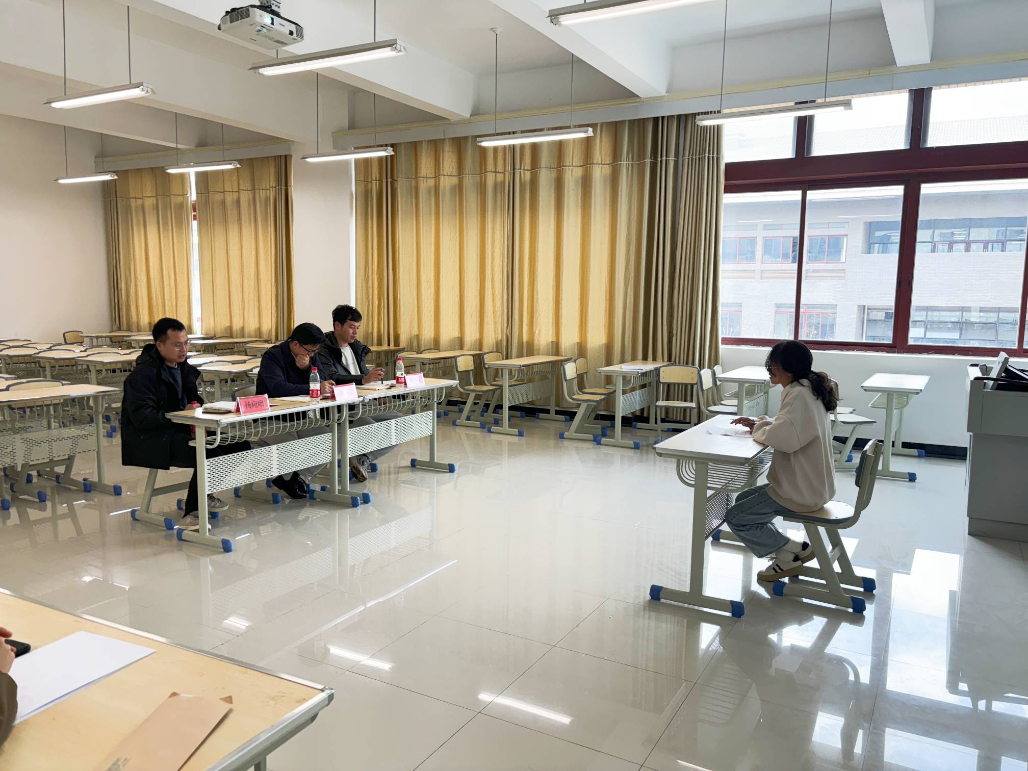 在硕士研究生模拟面试环节,8位党员教师担任面试官,14位考研上线学生按专业分组开展了模拟。面试现场按照研究生复试的要求、细则和流程进行模拟,学生们从中英文自我介绍、专业知识、学术经历及综合素质等方面展示个人能力。面试老师们结合学生的考研成绩、报考院校和现场表现等方面给予了细致的点评与指导,指出了存在的问题和不足,并给出了具体的改进建议和意见,同时勉励同学们要保持平和的应试心态,以更加积极认真的态度做好复试准备。