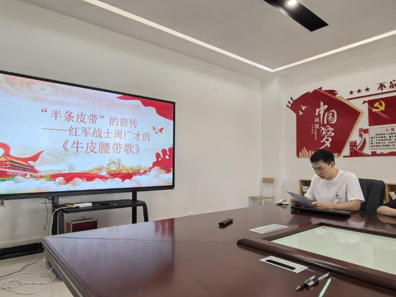 随后,学生党员陈云同志通过新颖的“微话剧”形式,以“半条皮带”的前传——红军战士周广才的《牛皮腰带歌》为主题,深情讲述了长征途中红军战士以信仰为支撑、以纪律为生命的感人故事。这段鲜活的党史故事深深打动了在场的每一位党员,让大家更加深刻地理解了中国共产党人艰苦奋斗、无私奉献的精神内核。