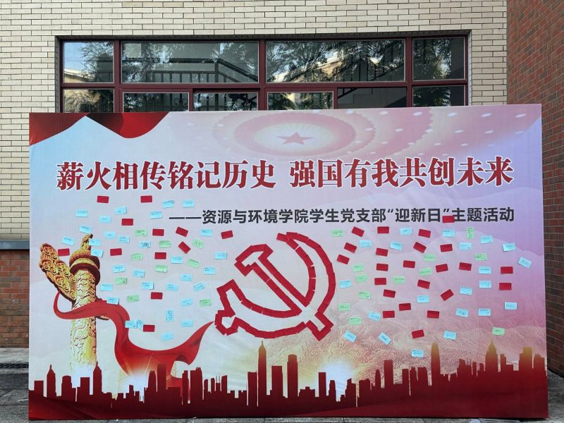 红旗飘飘,光辉闪耀。为纪念中国人民抗日战争暨世界反法西斯战争胜利80周年,引导青年学子铭记光辉历史,激发历史自觉与使命担当,筑牢理想信念根基,推动新生入学教育开好局、起好步,全面增强支部凝聚力和向心力,恰逢新生入学之际,9月3日至9月4日,资源与环境学院学生党支部组织开展“薪火相传铭记历史 强国有我共创未来”迎新日主题党日活动。