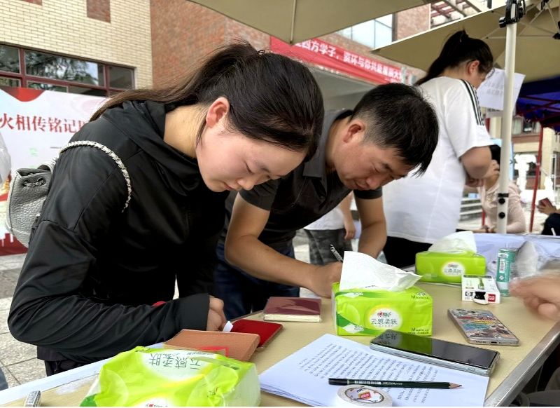 活动现场特别设置了“历史回眸”主题展示区。党员志愿者驻守展区,为新生及家长讲述抗战历史、阐释伟大抗战精神等。