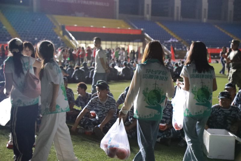 宣讲现场恰逢学院新生军训慰问,成员们紧紧围绕“铸牢中华民族共同体意识”这一主线,深刻阐释了我国各民族在历史长河中形成的“团结统一、守望相助”的宝贵传统,并同学院志愿者们一起向新生发放慰问品、答疑解惑。不仅以生动语言传递民族团结意识,更以实际行动诠释“各民族要像石榴籽一样紧紧抱在一起”的深刻内涵,让民族团结的种子在关心关怀广大青年学子的细微之处生根发芽。