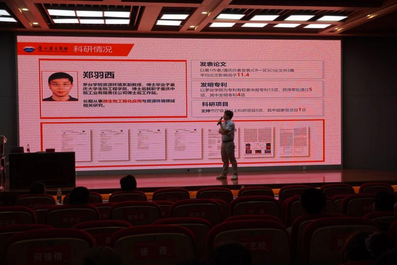 郑羽西老师以“茅台酿造环境中极端微生物的工程化与资源化应用关键技术研究”为题,主要围绕茅台极端微生物的发现、鉴定与机理研究,再到现有资源化利用研究方向与成果。