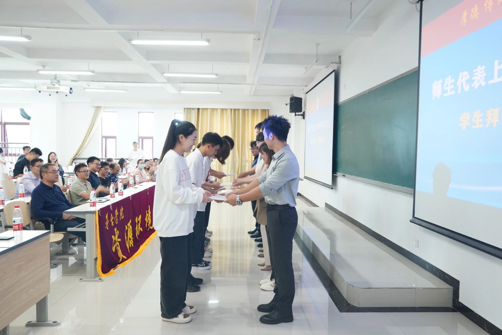 随后,会议举行了拜师礼及庄严的宣誓环节。学生代表向导师代表行中华传统鞠躬礼,导师代表向学生代表赠送《学生手册》。导师们郑重承诺将自己所学尽己所能交予学生,同时学生承诺一定努力学习,早日成才,将老师所授知识技能应用于实践。
