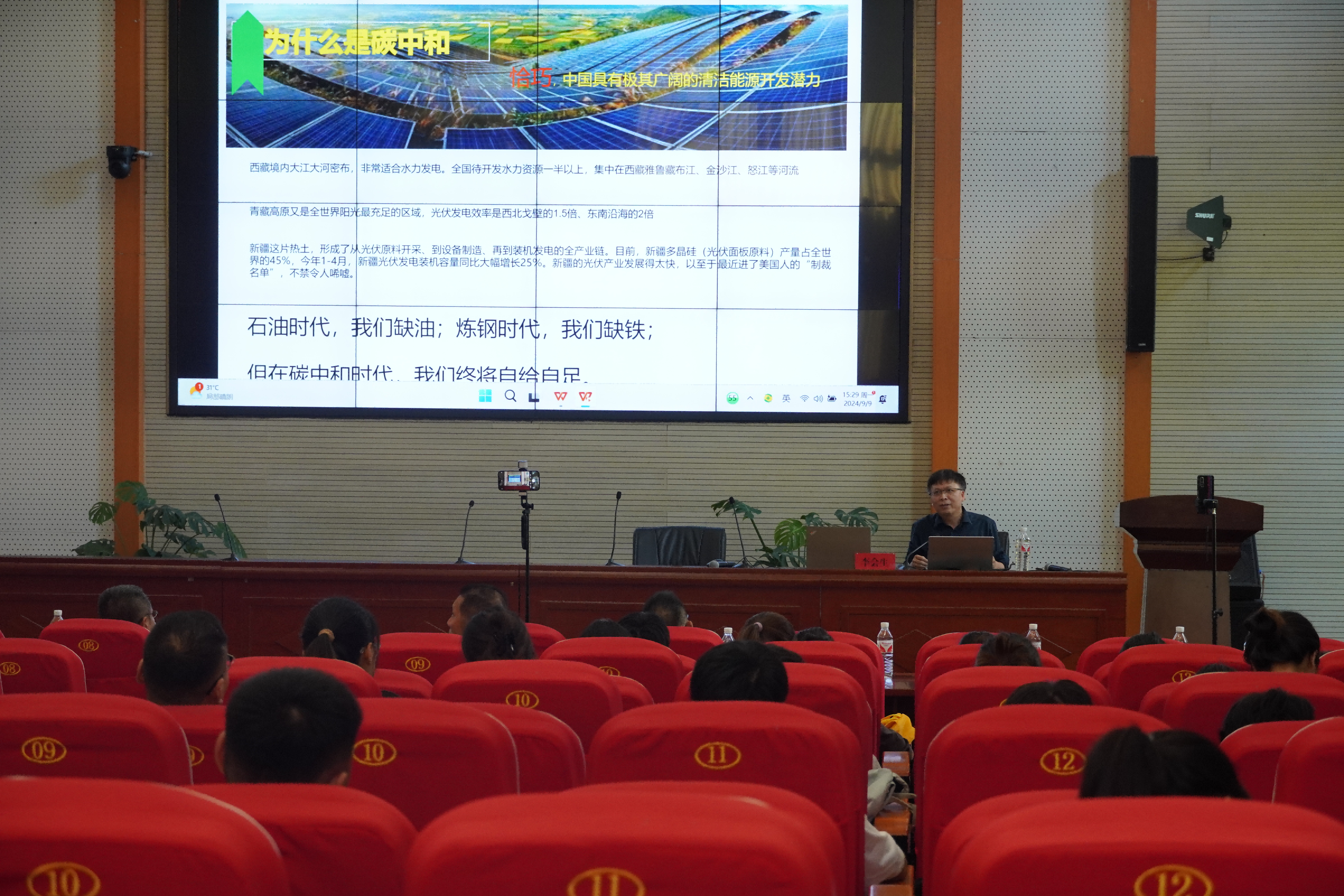李会生老师开篇以“碳中和的必然性”为引,通过欧洲重启煤电厂的案例,生动阐述了碳中和的概念。进而描绘了在全球碳中和浪潮中,中国清洁能源所展现出的独特优势与无限潜力,并深入剖析了中国碳中和全产业链的构建,使师生们直观感受到中国实现碳达峰、碳中和目标的坚定决心及实施路径。此外,李会生老师还深入分析了双碳战略对我国经济社会发展的深远意义。