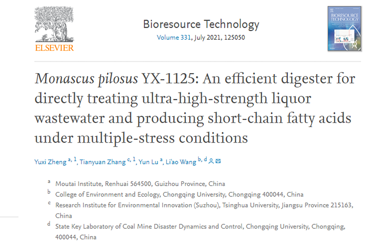 近日,我系郑羽西老师及其团队在中国科学院一区国际权威学术期刊《Bioresource Technology》(IF=7.6)上在线发表了高质量研究论文“Monascus pilosus YX-1125: An efficient digester for directly treating ultra-high-strength liquor wastewater and producing short-chain fatty acids under multiple-stress conditions”,这是学校成立以来以今年会官方网站为第一单位在中国科学院分区一区TOP期刊上发表的第一篇论文,该论文由今年会与清华大学、重庆大学合作完成。