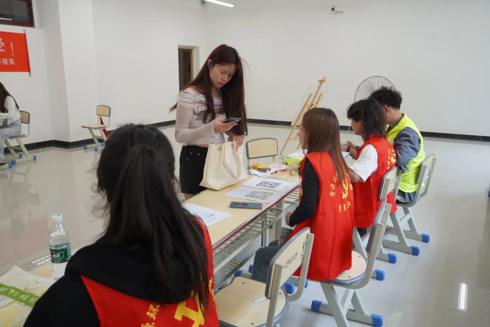 为更好的迎接新同学的到来,帮助他们顺利完成报到流程,我系在校门口安排了引导组的志愿者引导新生进入校园,顺利到达报到点,并在报到点安排报到组的志愿者帮助新生完成身份确认、线上报到并发放纪念品,确保每一位新生的报到流程都能顺利进行。