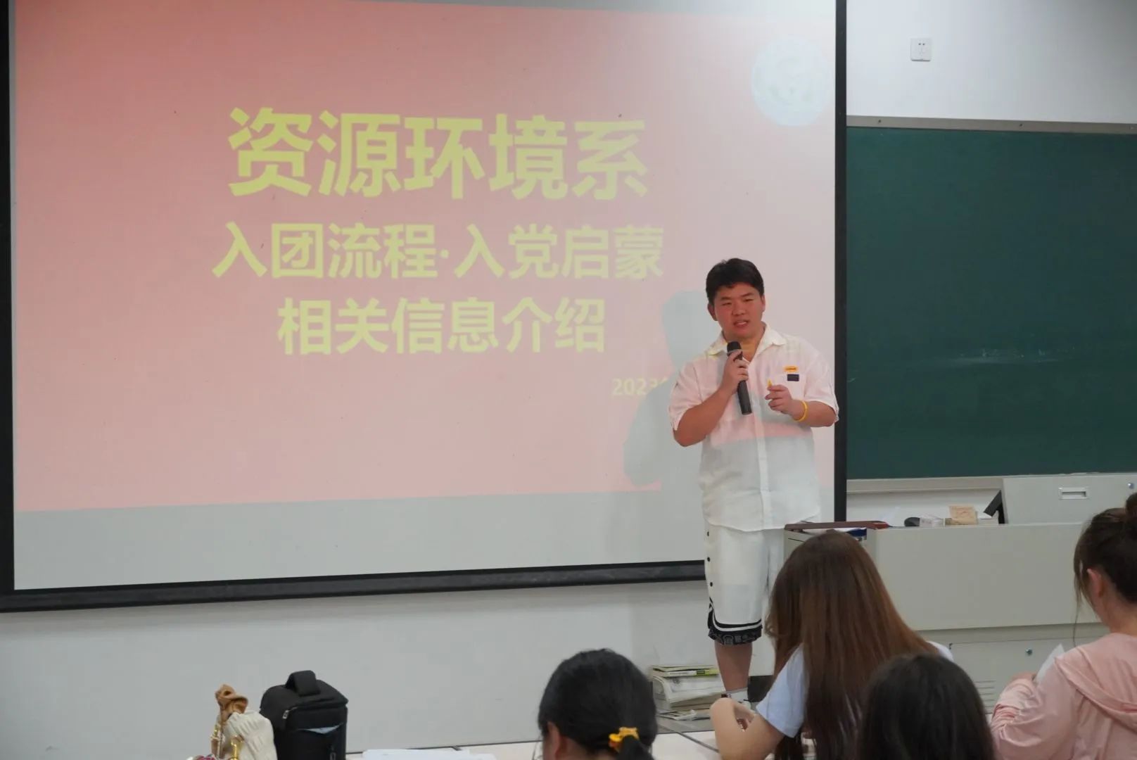 最后大会在大家满怀期待的招新环节中接近尾声,资源环境系团总支、学生会、易班工作分站负责人相继介绍组织的概况,新同学们也都拿到自己心仪组织的报名表。