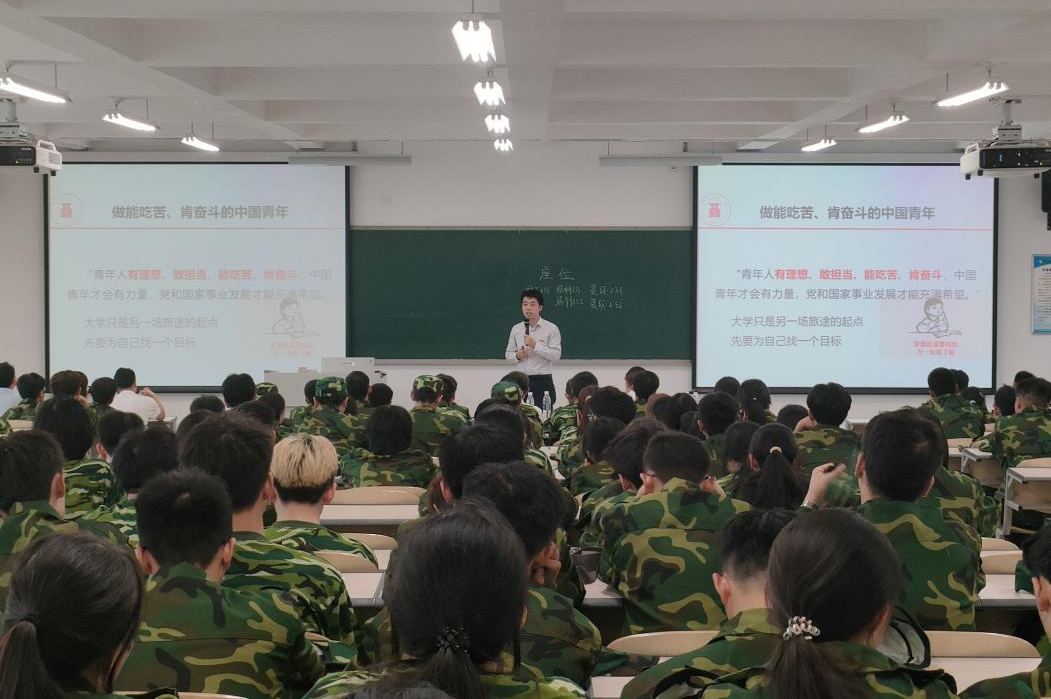 黄华老师随后向2023级新生开展理想信念与价值认同教育。黄华老师提到:青年人要有理想、敢担当、能吃苦、肯奋斗,中国青年才会有力量,党和国家事业发展才能充满希望,每一位青年学生都应该树立远大目标,并鼓励新生都能以先进的思想武装头脑,积极向党组织靠近。此外,黄老师还提到新生应该具备身份转换意识,尽早适应大学生活。
