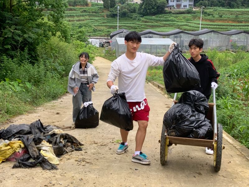 活动中,陶雪老师就垃圾分类、资源化利用以及循环经济理念进行了系统讲解,激发了同学们保护环境的责任感和使命感。随后,同学们3人一组,分工协作,深入校园及基地周边,开展垃圾清理和分类投放工作,确保“垃圾无痕、环境整洁”。同学们将捡拾到的废弃物进行细致分类,努力实现可回收物的再利用,以实际行动践行资源节约和环境友好型社会理念。“绿水青山就是金山银山,保护环境是我们青年一代的共同责任。”241班同学表示,此次劳动实践活动不仅增强了环保意识,也让大家更加深刻体会到环境保护紧迫性和重要性。大家纷纷表示,要将环保理念内化于心、外化于行,积极投身美丽中国建设。