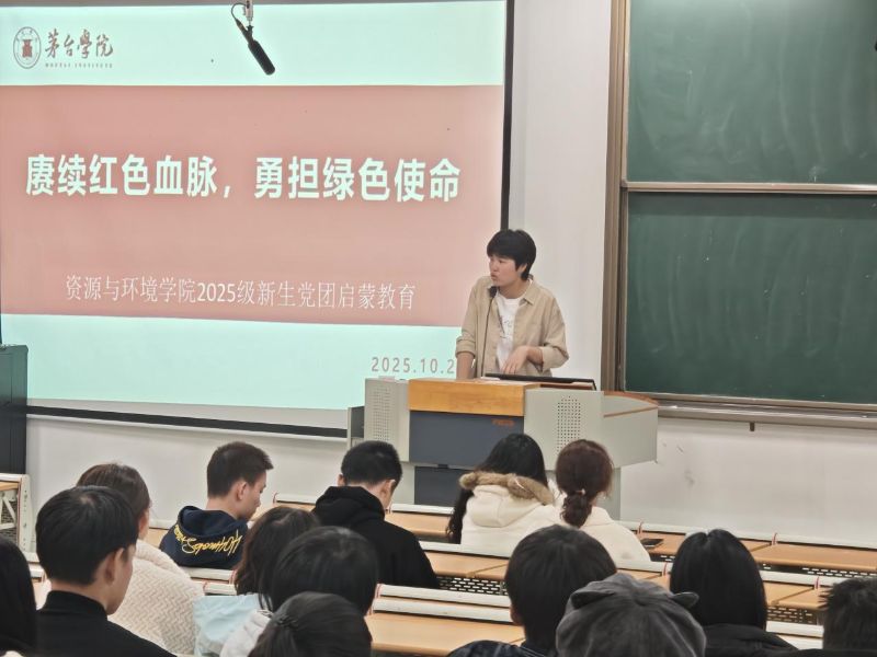 为积极引导和帮助2025级新生坚定理想信念,筑牢思想根基,找准人生方向,树立正确的人生观、价值观和世界观,2025年10月26日,资源与环境学院在A1-213教室组织开展“赓续红色血脉,勇担绿色使命”2025级新生党团启蒙教育专题讲座,讲座由资源与环境学院党总支副书记刘晓晓老师主讲。