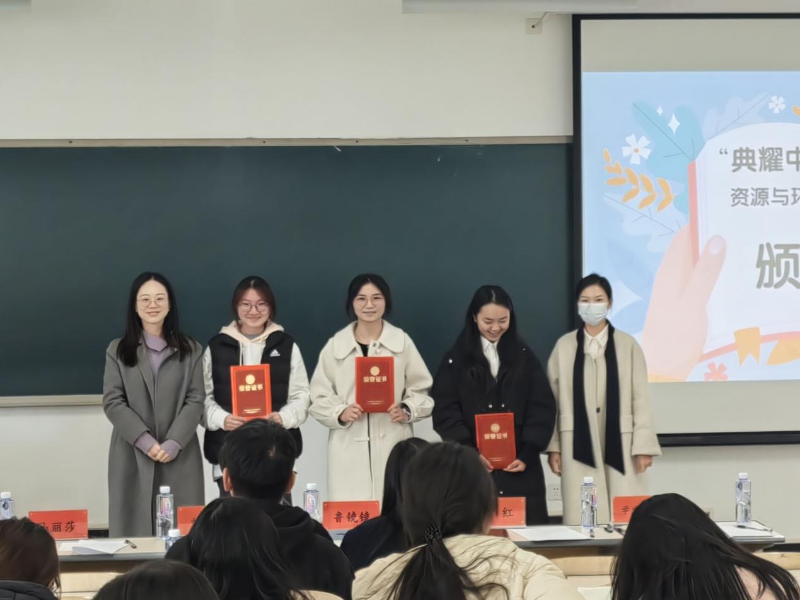 为落实立德树人根本任务,引导学生在阅读中启迪智慧、涵养情操,近日,资源与环境学院易班学生工作分站在A2-412教室组织开展了“典耀中华·阅享书香”读书分享会活动。活动由学院党总支副书记刘晓晓、学生工作室主办栾康、团总支书记鲁镜镜、党务干事邓红、易班工作分站指导教师马丽莎、优秀学生代表包世伟和潘建涛担任评委。