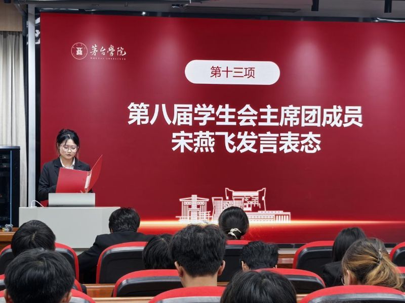 随后,第七届团总支副书记陈旭旭和学生会主席团成员周奕汛对上一学年学院团学工作进行了全面总结。陈旭旭以“微团课”为思想引领主线,系统回顾了过去一年在理论学习、红色教育等方面筑牢理想信念根基的举措,并介绍了志愿服务、文体赛事等实践活动的开展成效,展现了团总支凝聚青年、同心向党的组织合力。周奕汛总结了学生会在组织协调与活动策划方面的稳步提升,同时指出宣传联动与部门协同等机制仍有优化空间,仍需深耕细节、完善流程。他寄语新一届学生会成员秉承初心、勇于开拓。