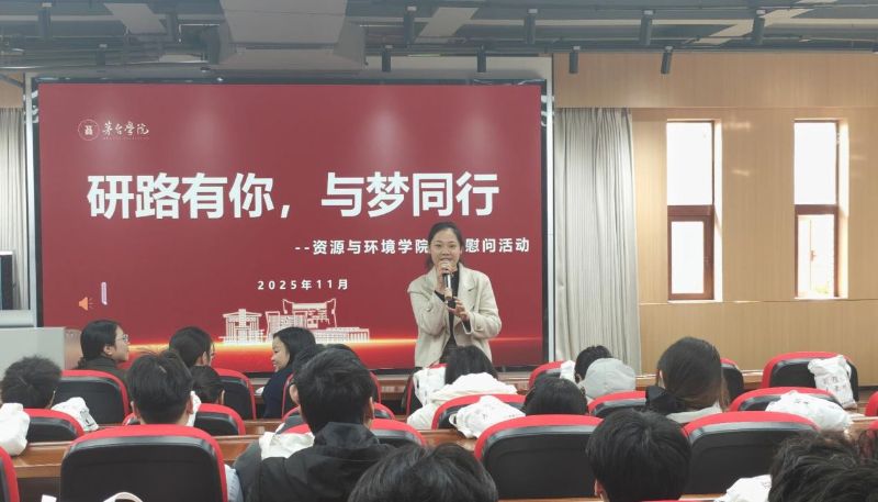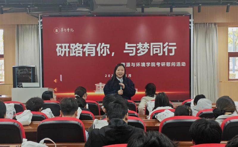 为缓解2026届考研学子备考压力,增强冲刺信心,传递学院温暖与关怀,2025年11月25日,资源与环境学院于A2-111报告厅开展了“‘研’路有你,与梦同行”考研慰问活动。资源与环境学院党总支副书记刘晓晓、辅导员冯乾伟、马丽莎、鲁镜镜和张海波出席活动,全体2026届考研学生参加。