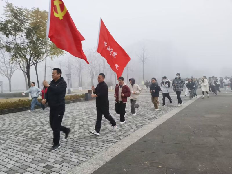 动员启航:天微微亮,雾气蒙蒙,黄训星书记高声动员,他借长征史诗点亮征程,号召全体师生将每一次呼吸视作与革命先辈的深刻对话,把每一滴汗水凝结成“强国有我”的铿锵誓言,让长征精神的血脉在奋勇奔跑中激昂延续、赓续传承。
