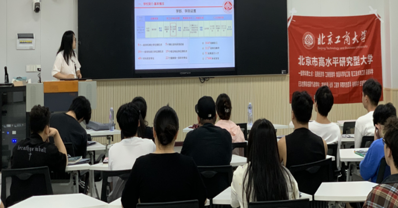在随后举行的研究生招生宣讲会上,北京工商大学教师系统解读了本校研究生招生政策,涵盖化学、化学工艺、化学工程、环境科学与工程、资源与环境等多个专业方向,重点介绍了专业设置、报考条件、录取机制(含排名择优录取)、数学要求、奖助体系(包括全额奖学金)以及相关学科的优势特色等内容。宣讲内容详实、针对性强,引起了在场学生的浓厚兴趣,部分学生现场扫码添加教师联系方式,表达了报考意愿。