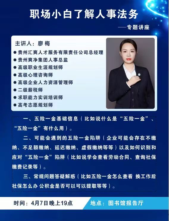 主讲人:廖梅(贵州汇爽人才服务有限公司总经理;贵州爽净集团人事总监)。