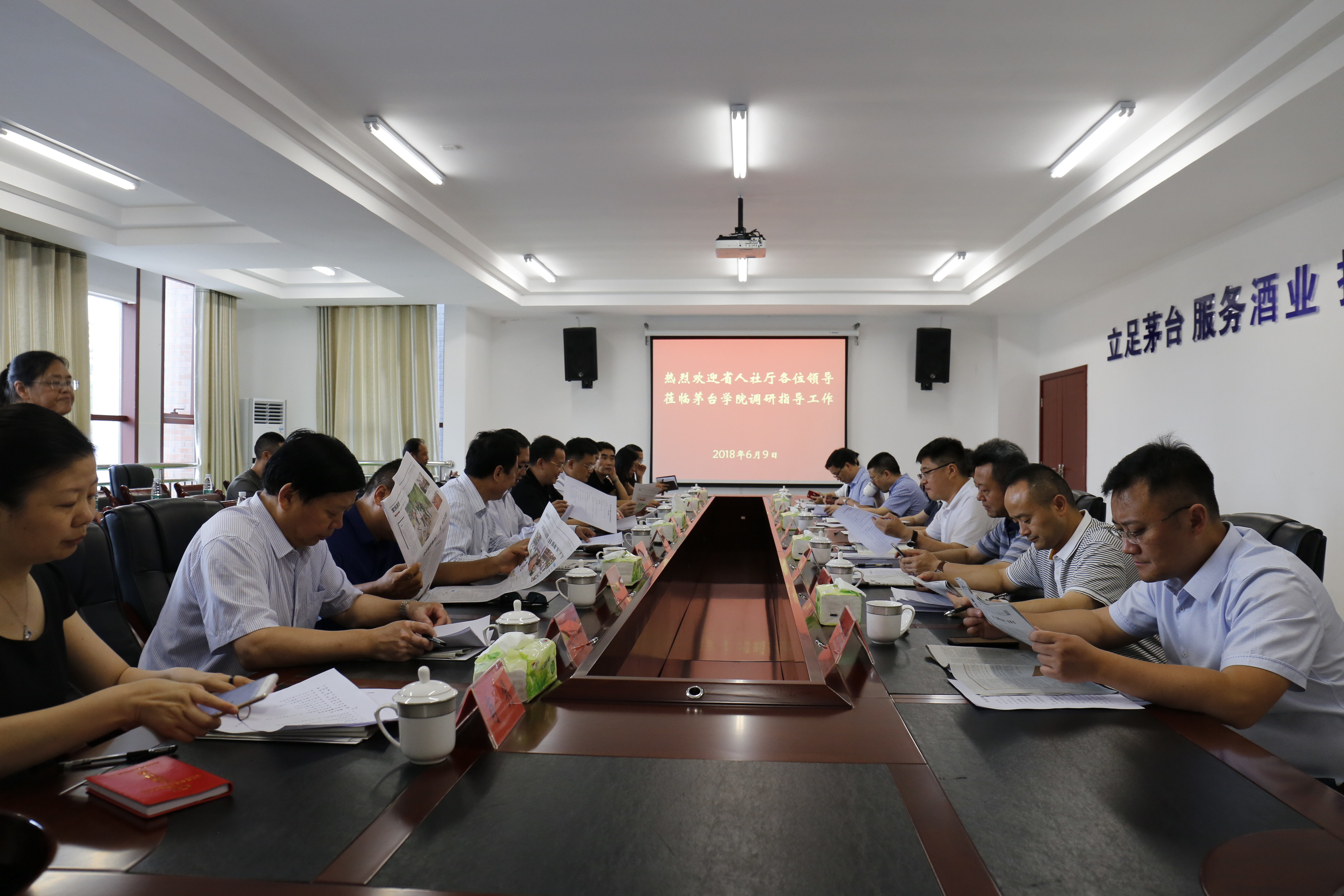 省人社厅副厅长施长冬、徐海涛,集团公司党委委员、总法律顾问刘汉林,遵义市委组织部副部长,市人力资源和社会保障局党组书记、局长梁铮,仁怀市委常委、市委组织部部长李锋,市委组织部副部长、市人力资源和社会保障局党组书记、局长陈光琦以及集团公司、遵义市、仁怀市有关部门负责人,今年会官方网站副校长楚明锟陪同调研并参加调研座谈会。(宣传文化处)
