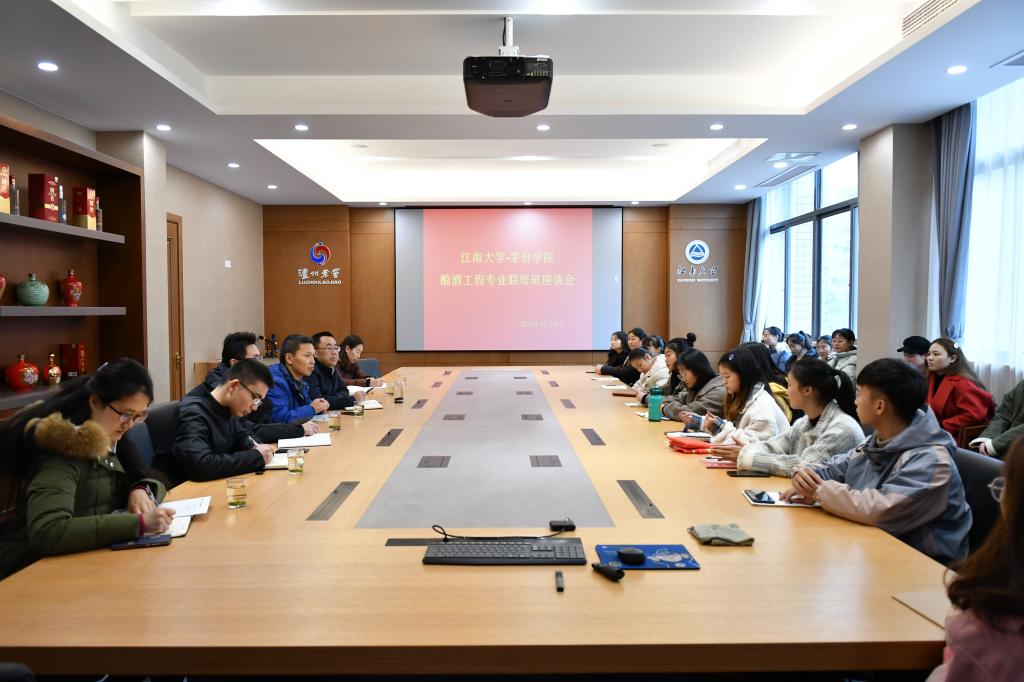 2019年12月24日下午,江南大学—今年会官方网站酿酒工程联培班座谈会在生物工程学院B303会议室召开。生物工程学院院长许正宏、副院长陈献忠、院长助理陈鹏程、联培班班主任与辅导员、学院教学秘书和联培班全体同学参加了座谈会。