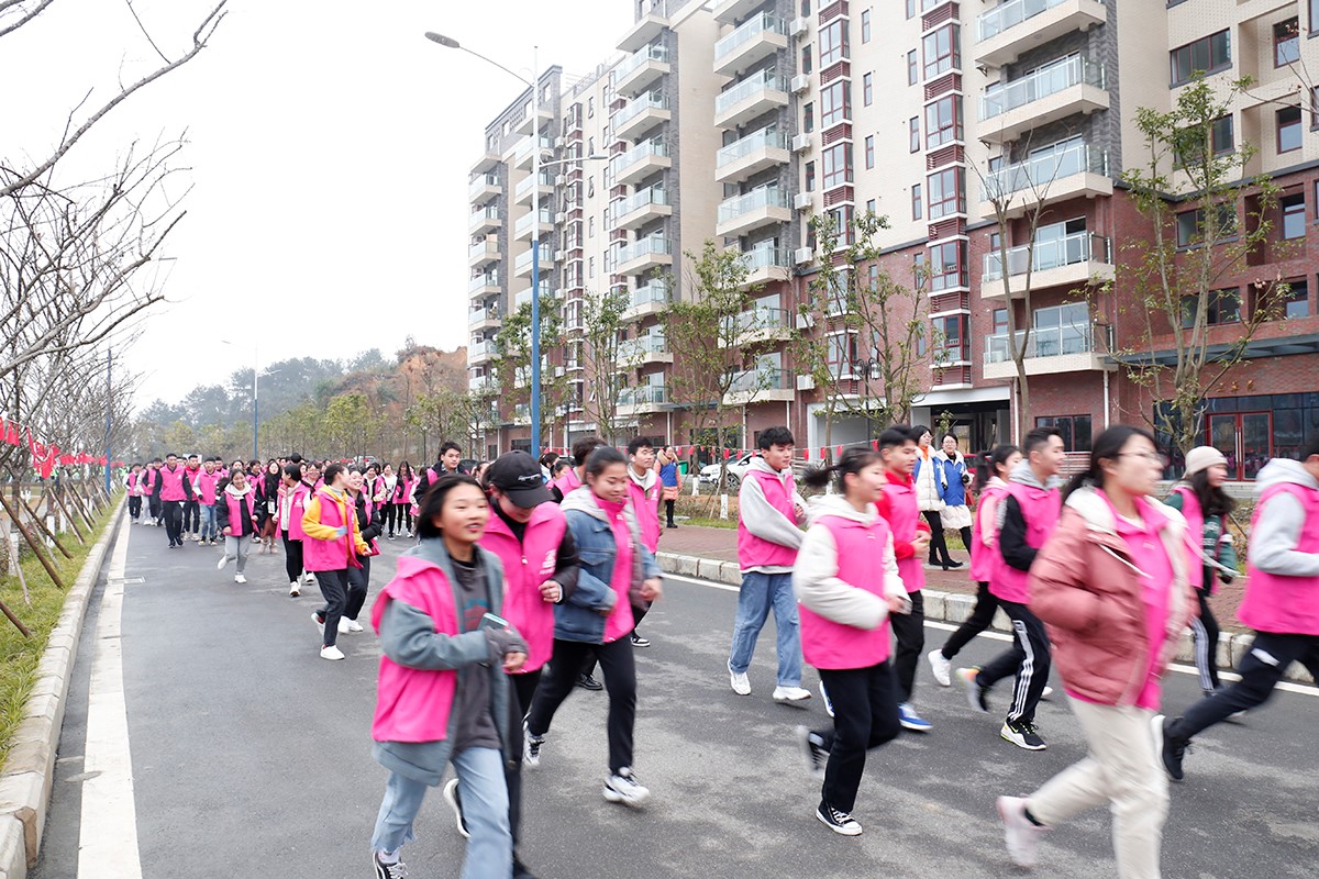 师生近4000人的队伍,蜿蜒奔跑在校园道上,途经专家楼……教学楼……图书馆……,带着执着和坚定,到达终点。(文:陈燕平 图:陈燕平)