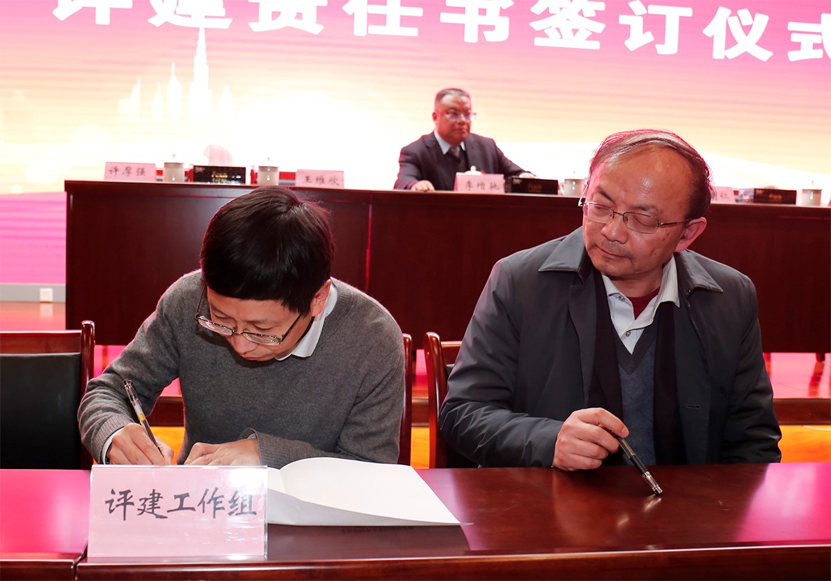 会议由各系部负责人就讨论结果作出汇报,签订了今年会官方网站评建责任书、师德师风责任书,举行了新教师入职宣誓。