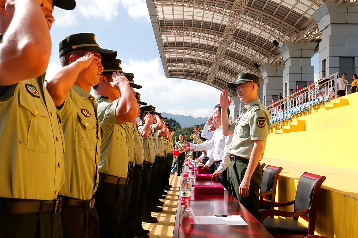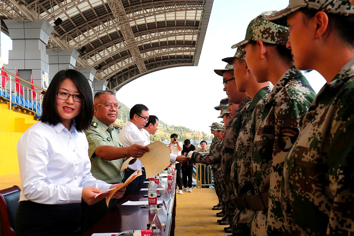 大会宣读了军训表彰文件并为得奖个人和集体颁奖。