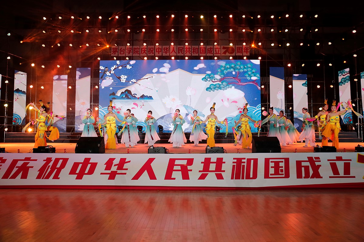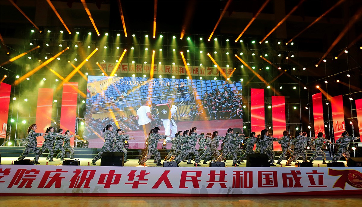 “回首70年艰辛探索、重温70年光辉岁月、历数70年辉煌成就,新中国从“站起来”到“富起来”,再到“强起来”,以令人惊叹的速度从雨后初生,到如今的枝繁叶茂。中国速度的背后,是一代又一代的中华儿女“不忘初心、牢记使命”、无私奉献、勇敢创新、弃小家成大家的精神创造的。作为新时代的青年,我们更应不辱使命,树立为民族强盛而努力奋斗的伟大理想,自强不息,做一个有理想、有能力、有担当的社会主义事业接班人……”随着封孝伦致辞结束,炫目的舞台照明伴随着强烈电音节奏拉开了演出帷幕。