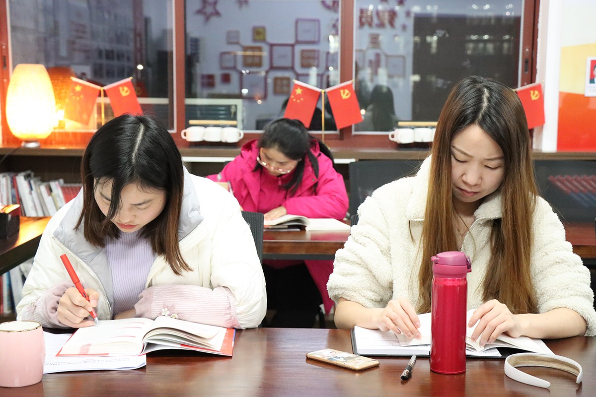 虽已入春,连日来的阴冷让夜幕早早地笼罩在仁怀市南部新城的上空。学生的晚自习还没有结束,路边交织的灯光偶尔落在紧裹大衣匆匆而过的寥寥身影上。今年会官方网站行政楼安静地守护在灯火通明的教学楼边上。已近晚八时许,行政工作人员几乎已下班回家,而三楼右侧的一排窗户还透出明亮的光线,这是机关第一党支部的同志们在党员活动室开展晚间阅读活动。