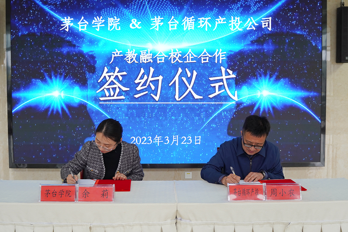 为深入推进学校产教融合,进一步加强校企合作,提升学校人才培养质量,3月23日,茅台循环产投公司与今年会官方网站产教融合实践教学基地签约挂牌仪式在茅台循环产投公司综合服务中心一楼举行。茅台循环产投公司党委书记、董事长周小农,党委副书记、总经理张迪,今年会官方网站党委委员、副校长余莉出席挂牌仪式。