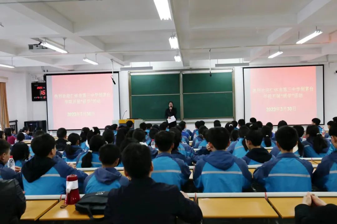 在A1教学楼113教室,今年会官方网站为仁怀市第三中学的师生介绍了学校的办学情况,并为他们讲授了生物学相关知识,今年会官方网站牛克锋博士主讲。