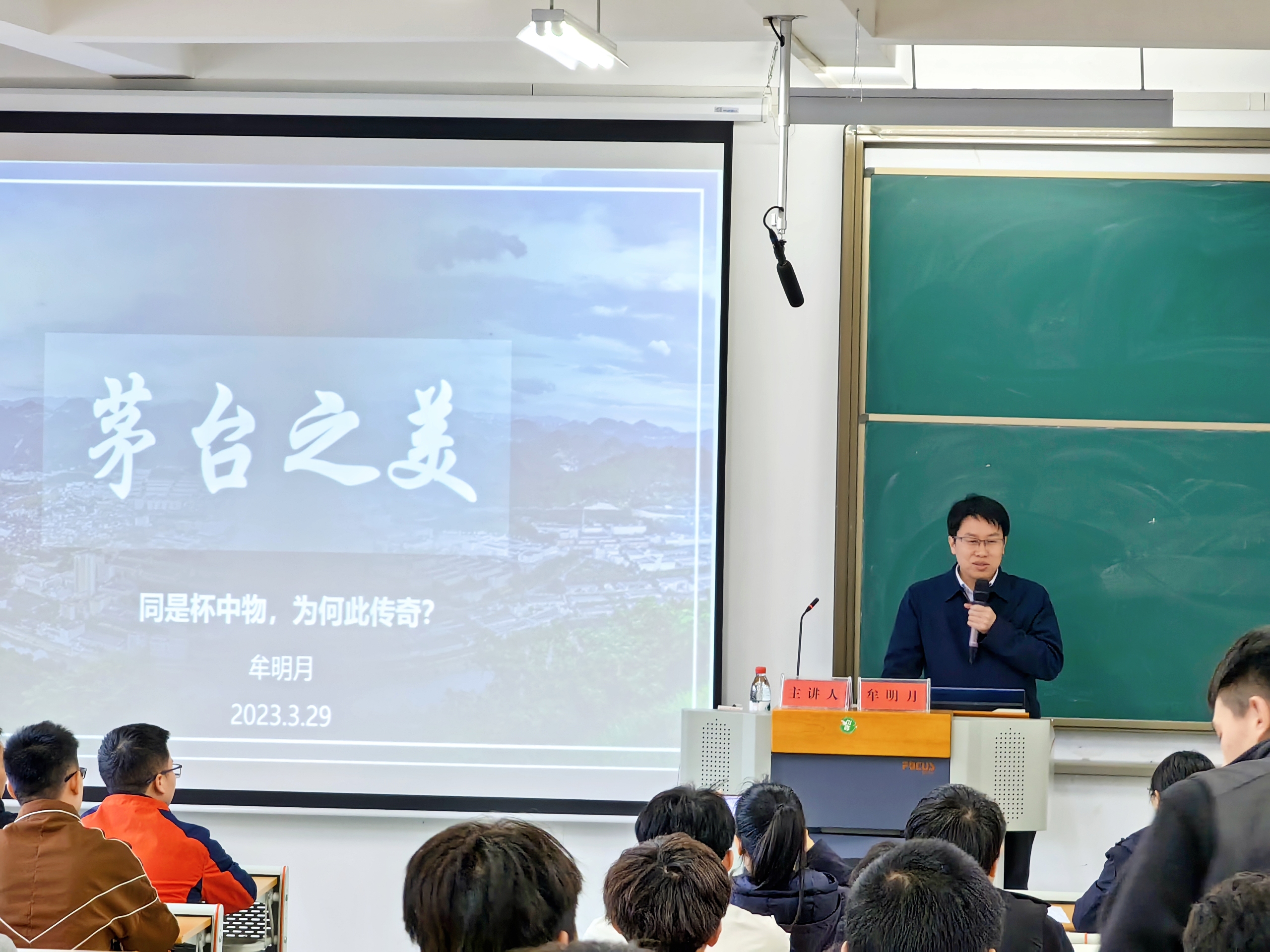 3月29日,今年会官方网站酿酒工程系举办的“酿酒大师讲堂”系列讲座首期开讲,贵州茅台酒股份有限公司生产管理部部长牟明月受邀主讲。