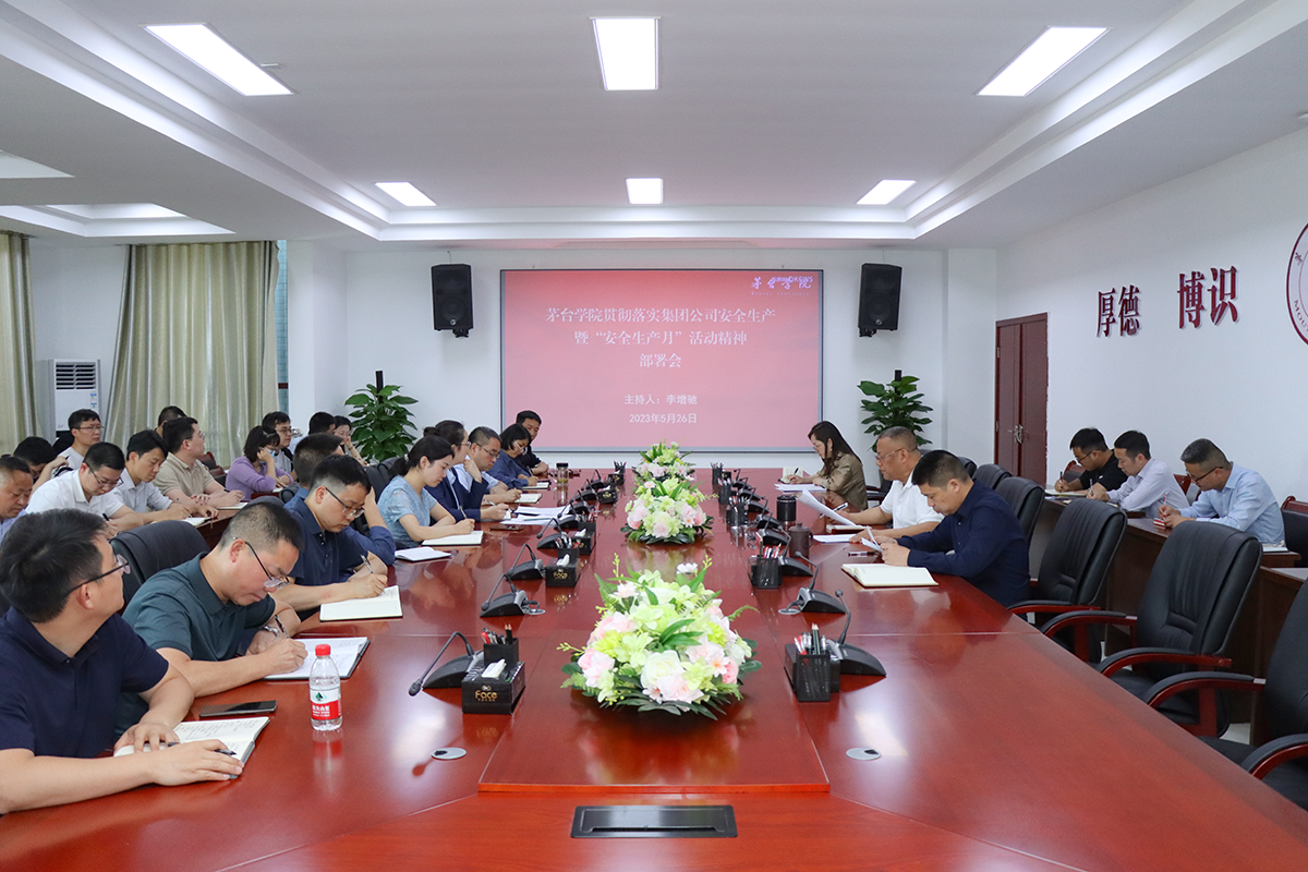 会议传达了《省国资委安全生产和消防安全重大事故隐患专项排查整治2023行动工作方案》《省国资委2023年“安全生产月”活动方案》《省防指办公室转发国家防汛抗旱总指挥部办公室关于贯彻全国防汛抗旱工作电视电话会议精神认真做好防汛抗旱各项工作的通知》文件内容,传达了茅台集团安全生产和消防安全重大事故隐患专项排查整治2023年行动暨“安全生产月”活动部署会议精神,对学校安全稳定相关工作作了安排。